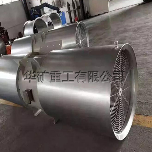 射流風機懸掛在隧道頂部,利用隧道本身作為風道。射流風機經過特別設計,能從給定的耗用功率中產生最大的噴射動力,其運作功能是基于沖擊傳動的原理,工作時,經過隧道總空氣流量的一部分被風機吸入,再由出口高速噴出,由于噴出的氣流與剩余空氣的推動力發(fā)生變化,能量既注入后者,從而把隧道內空氣推向出口一端,并從進口吸入新鮮空氣。一氧化碳濃度與渾濁空氣由進口點開始增加,增至出口達最大值,即是設計值。風機安裝與隧道橫斷面內,不占用交通面積,無需特別通風建筑,安裝方便,土建造價低。