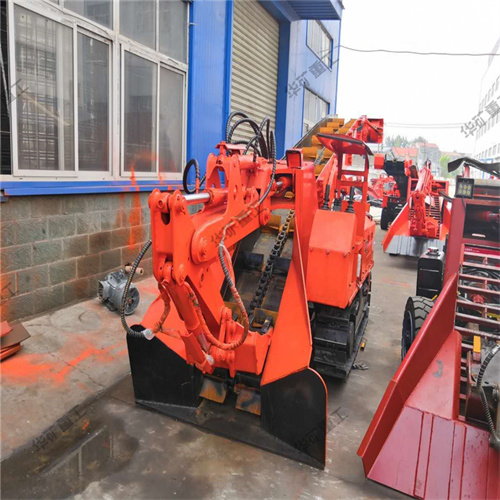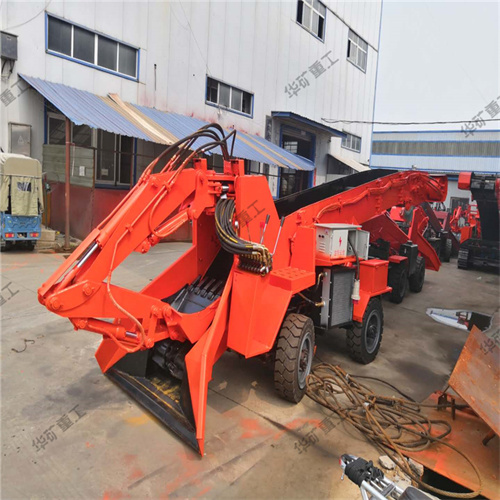 礦用挖掘式裝載機又稱扒渣機,坑道清理機,坑道出渣機。按照行走方式分為輪式和履帶式。它是及液壓行走,挖掘裝置,皮帶輸送,裝車,清理巷道底部五種功能。主要由電動機,液壓行走,挖掘裝置,行走裝置,皮帶輸送卸料和電器控制系統(tǒng)等部分組成。整車液壓系統(tǒng)由一臺15kw電動機為動力帶動齒輪泵,液壓油經(jīng)油箱到多路閥到執(zhí)行動作元件再回到油箱,通過多路閥的四個手柄完成對液壓裝置的控制。它突出的優(yōu)點就是操作靈活,出渣效率高,以:2m*2m巷道為例,一排炮在一小時左右就可以清理干凈。