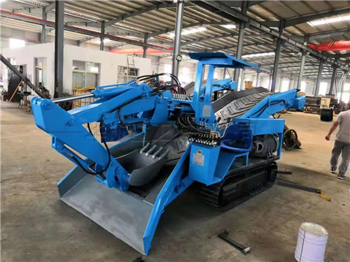 扒渣機又稱礦用挖掘式裝載機,坑道清理機,坑道出渣機。按照行走方式分為輪式和履帶式。它是及液壓行走,挖掘裝置,皮帶輸送,裝車,清理巷道底部五種功能。主要由電動機,液壓行走,挖掘裝置,行走裝置,皮帶輸送卸料和電器控制系統(tǒng)等部分組成。采用底盤分體設(shè)計,通過力強,可以靈活的通過巷道“小支脈”。輸送大架采用分體設(shè)計,對于豎井礦山下井安裝極為方便。皮帶采用pvg高拉力阻燃帶使用壽命長,可保證掘進巷道距離為360m以上。扒渣機具由轉(zhuǎn)彎靈活,操作簡單,掘進巷道不用調(diào)頭,效率高等優(yōu)點。
