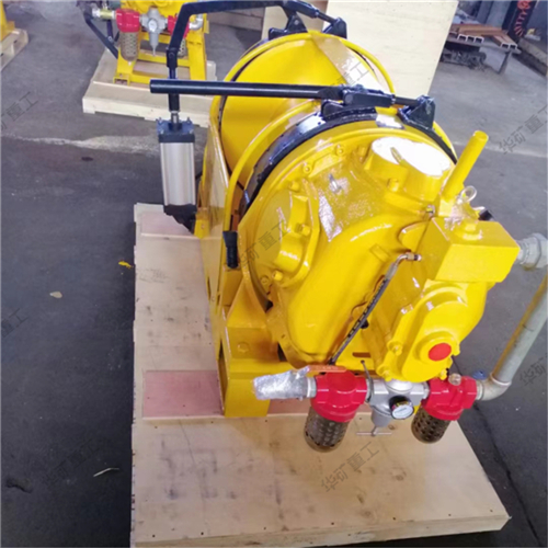 氣動絞車是以葉片式氣動馬達為動力,通過行星齒輪減速機傳遞動力至滾筒起吊重物。馬達和減速機分別連接滾筒的兩側(cè),使絞車體積小、重量輕、結構緊湊、操作簡單、維修方便、在一定范圍內(nèi)可實現(xiàn)無級調(diào)速,絞車的制動是通過馬達制動實現(xiàn)的,剎車可靠。在沒有壓縮空氣的情況下可進行手動操作。