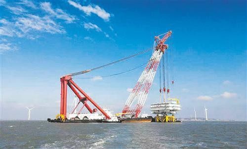 日前,福建首座220kV海上升壓站“落戶”三峽集團福清興化灣海上風(fēng)電場。圖為國內(nèi)首個將SVG動態(tài)無功補償裝置設(shè)置在海上的升壓站,也是目前國內(nèi)集成度最高,單體最大最重的海上升壓站。