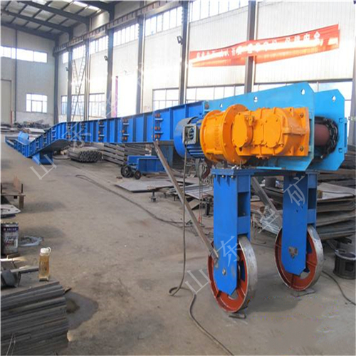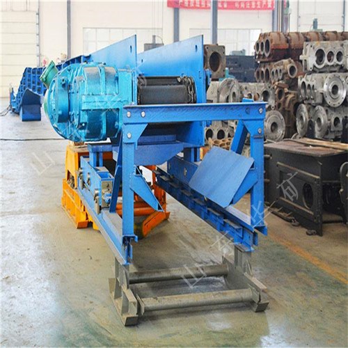 刮板轉(zhuǎn)載機(jī)是一種可以縱向整體移動(dòng)的重型刮板輸送機(jī),其長(zhǎng)度較小,便于隨著采煤工作面的推進(jìn)和帶式輸送機(jī)的收縮而整體移動(dòng)。轉(zhuǎn)載機(jī)安裝在采煤工作面運(yùn)輸巷中,與可伸縮帶式輸送機(jī)配套使用,同工作面刮板輸送機(jī)銜接配合順槽用刮板轉(zhuǎn)載機(jī)有軋制中部槽組裝式和整體組焊箱式結(jié)構(gòu)兩種,主要用于綜合機(jī)械化采煤,在長(zhǎng)壁工作面刮板輸送機(jī)和順槽可伸縮皮帶機(jī)之間起轉(zhuǎn)載輸送煤炭的作用。使用轉(zhuǎn)載機(jī)后,可以避免順槽可伸縮皮帶機(jī)機(jī)尾的頻繁移動(dòng),從而保證工作面生產(chǎn)的順利進(jìn)行。刮板轉(zhuǎn)載機(jī)主要應(yīng)用于高產(chǎn)、高效綜合機(jī)械化工作面順槽轉(zhuǎn)載輸送煤炭。它是由中部槽、鏈條、刮板及牽引系統(tǒng)組成。