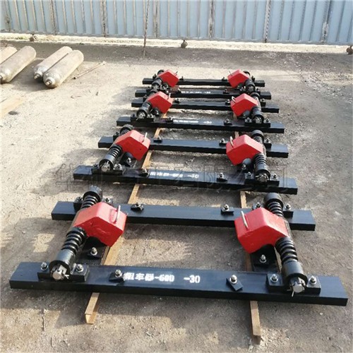 阻車器為了發(fā)揮其作用必須在安裝時將阻車器作為煤礦地面或井下運(yùn)輸軌道上阻擋600mm、900mm軌距1噸、1.5噸、3噸礦車使用。根據(jù)需要可用兩套單式阻車器并成復(fù)式阻車器。