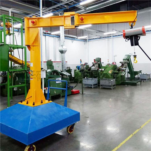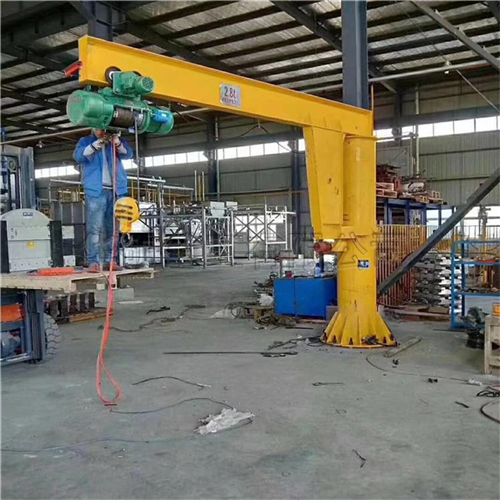 BZD型旋臂起重機(jī)是與PK型環(huán)鏈電動(dòng)葫蘆或CD、MD型電動(dòng)葫蘆配套使用的一種起重機(jī)械。它由立柱、回轉(zhuǎn)臂、懸臂驅(qū)動(dòng)裝置和電動(dòng)葫蘆組成。立柱下端底座通過地腳螺栓固定在混凝土基礎(chǔ)上,由電機(jī)帶動(dòng)減速機(jī)驅(qū)動(dòng)裝置使懸臂回轉(zhuǎn),電動(dòng)葫蘆在懸臂工字鋼上作往返運(yùn)行作業(yè)。BZD型旋臂起重機(jī)具有結(jié)構(gòu)簡單,操作方便,占用空間小,作業(yè)范圍大等特點(diǎn)。廣泛應(yīng)用于機(jī)械制造、汽車、造船等現(xiàn)代化工業(yè)的生產(chǎn)線、流水線、裝配線及倉庫、碼頭、實(shí)驗(yàn)室等場(chǎng)合的物料吊運(yùn)作業(yè)中。是企業(yè)提高工效,改善勞動(dòng)條件的理想起重設(shè)備。 BZD型旋臂起重機(jī)屬于輕中級(jí)工作制,額定工作量為0.25t、0.5t、1t、2t、3t、5t六種規(guī)格。根據(jù)工作崗位需要選用不同規(guī)格型號(hào)的起重機(jī)和起升速度與運(yùn)行速度。該機(jī)具有兩種操縱形式:電動(dòng)回轉(zhuǎn)和手動(dòng)回轉(zhuǎn)。旋轉(zhuǎn)臂的回轉(zhuǎn)角度根據(jù)使用場(chǎng)所需要可選擇180°、270°、345°、360°等不同的角度。