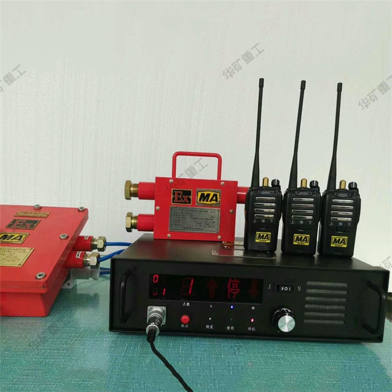 本系統(tǒng)實(shí)現(xiàn)井上機(jī)房人員和斜井機(jī)車或豎井吊罐中維修人員相互通話的通訊設(shè)備。它可以有效地傳遞語音及打點(diǎn)信號,使井上有關(guān)人員和斜井及豎井內(nèi)人員建立起緊密的聯(lián)系。系統(tǒng)由設(shè)在機(jī)房內(nèi)的基地臺、穩(wěn)壓電源,鋪設(shè)在井道中泄漏電纜以及人身攜帶的手持機(jī)所組成。基地臺收到的語音、打點(diǎn)信號由機(jī)外的話筒喇叭發(fā)出,在85dB的噪音環(huán)境中仍能與手持機(jī)進(jìn)行通話或打點(diǎn)聯(lián)系。(基地臺具有記憶并顯示打點(diǎn)次數(shù)的功能)。該系統(tǒng)配套的設(shè)備均可以在具有煤塵、爆炸性氣體的礦井中使用。安裝了這套設(shè)備,能夠保障斜井人員及豎井檢修人員安全、可靠地工作。基地臺、穩(wěn)壓電源安放在機(jī)房的桌面上,使用127V交流照明電。