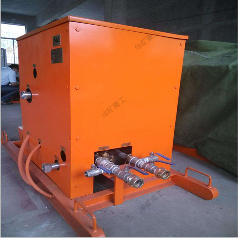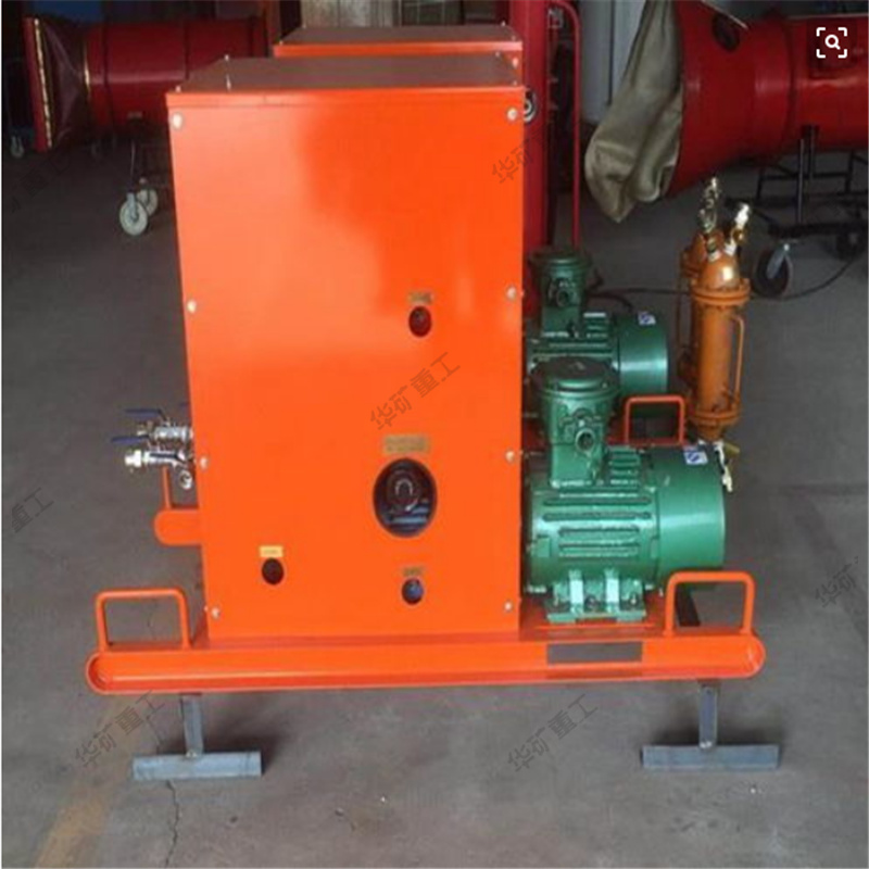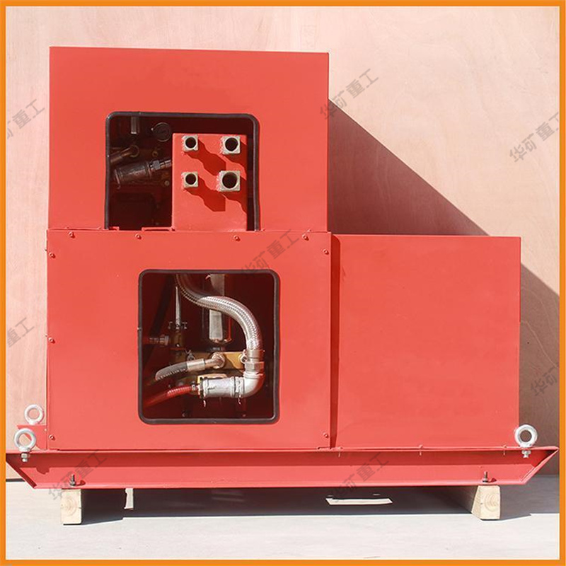 主泵用來(lái)輸送已加入促凝劑的水,輔泵用來(lái)輸送液態(tài)純膠(如水玻璃),這兩種液料經(jīng)各自的輸送膠管輸送到混合器中均勻混合后,經(jīng)三個(gè)出液口送出。根據(jù)各料的配比不同,這種液態(tài)的高水膠料混合液可在30~400秒內(nèi)形成固態(tài)膠體,用于煤礦滅火和防火。