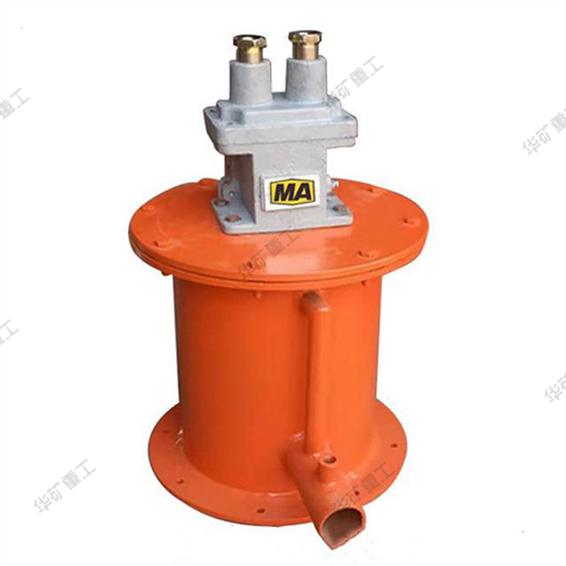 斷水保護裝置由隔爆外殼和內(nèi)部組裝微動開關組成,外殼包括主腔和接線箱,運動部分為直動式。水箱內(nèi)有不銹鋼浮子,浮子室有進水口,浮子、密封墊及排氣管出水口組成;利用水的浮力使浮子浮起打開微動開關,保證泵的控制回路接通;礦用微動隔爆開關管道無水時浮子落下,微動開關打開,泵的控制回路斷開。還可根據(jù)需要在出水口安裝水壓表顯示供水管的壓力(安裝磁化水室)。