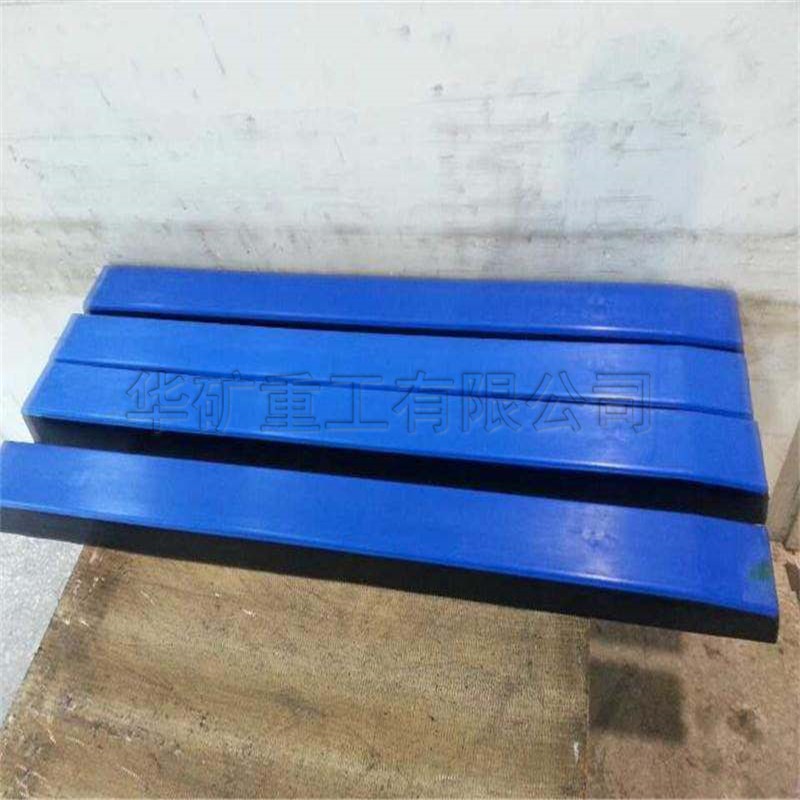緩沖條應(yīng)用優(yōu)良的高彈性特種橡膠層充分有效吸收了物料下落時的沖擊力,大大降低了物料下落時對輸送帶的沖擊,真正的改善了落料點的受力狀況。并采用特殊的UHMW高分子聚乙烯表面,使輸送帶與緩沖條之間的摩擦系數(shù)降到最低,且耐磨性好。緩沖條的使用保證了輸送帶的面與面的接觸,受力均勻,有效防止了由于托輥斷裂、脫落造成的皮帶縱向撕裂,同時大大降低了皮帶被銳器或尖銳物料穿透后縱向撕裂的概率。