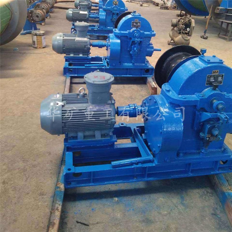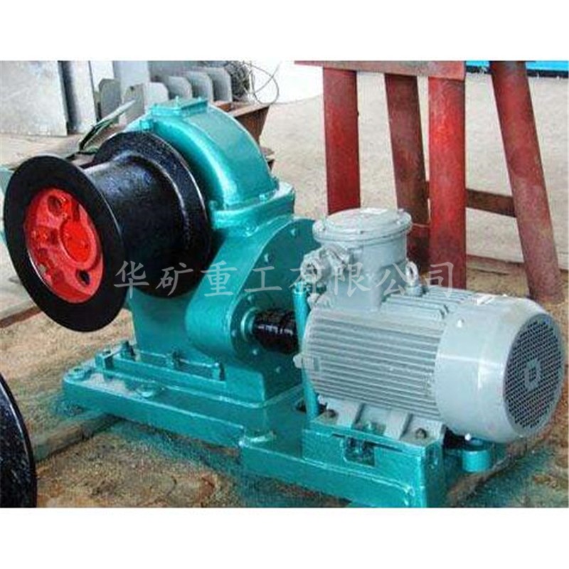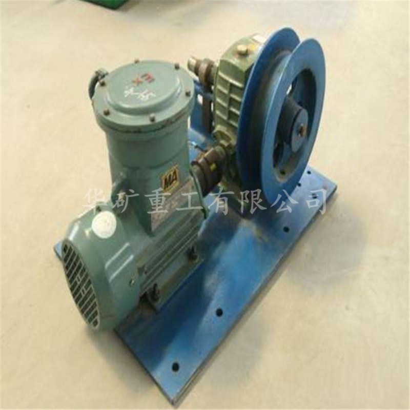 啟閉風(fēng)門(mén)絞車由防爆電機(jī)、聯(lián)軸節(jié)、傳動(dòng)齒輪、蝸輪減速機(jī)、卷筒、底座六大部分組成。由電動(dòng)機(jī)通過(guò)一對(duì)傳動(dòng)錐齒輪,傳動(dòng)蝸輪減速機(jī)帶動(dòng)卷筒進(jìn)行工作,傳動(dòng)零件的支承、蝸輪采用滑動(dòng)軸承,蝸桿采用滾動(dòng)軸承,蝸桿有自鎖作用,以防止鋼絲繩下滑。本機(jī)以電動(dòng)機(jī)驅(qū)動(dòng),但是在暫時(shí)切斷電源或不具備電源時(shí)亦可手動(dòng)驅(qū)動(dòng)。啟閉風(fēng)門(mén)絞車適用于礦井中大型軸流式通風(fēng)機(jī)啟閉風(fēng)門(mén)以轉(zhuǎn)換風(fēng)流方向,并配有隔爆電氣設(shè)備,可用于有瓦斯、煤塵的井下作業(yè)。