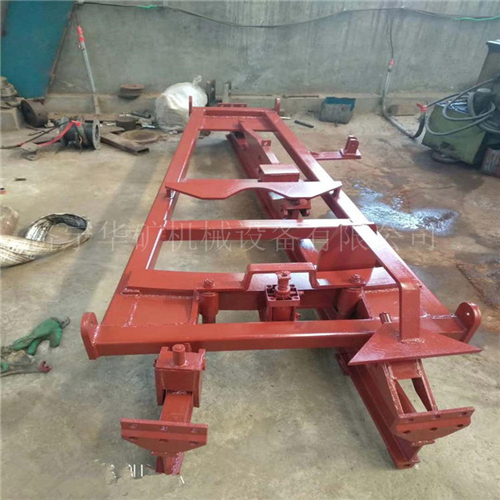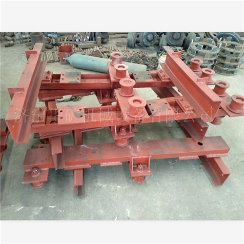 無(wú)極繩絞車道岔是為了解決在產(chǎn)量大的礦井中無(wú)極繩絞車,運(yùn)輸?shù)碾y題。常用的道岔在運(yùn)輸時(shí)主繩與副繩經(jīng)過(guò)道岔時(shí)有兩種處理方式①把道岔與繩接觸的位置切割成繩槽;②做成簡(jiǎn)易活動(dòng)道岔,用人工方式扳動(dòng)。但以上兩種方式都都存在缺陷,方式①破壞軌道容易造成車輛掉道,方式②用人工太費(fèi)時(shí)費(fèi)力且簡(jiǎn)易活動(dòng)道岔不穩(wěn)固,基于此以上方式都無(wú)法達(dá)到理想效果且存在安全隱患。無(wú)極繩絞車道岔可以使無(wú)極繩絞車主、副繩順利通過(guò),無(wú)極繩絞車牽引車能平穩(wěn)、安全的通行。