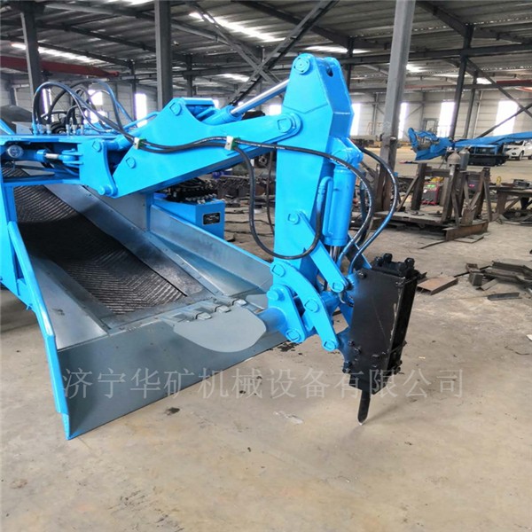 采用底盤分體設(shè)計,通過力強,可以靈活的通過巷道“小支脈”。輸送大架采用分體設(shè)計,對于豎井礦山下井安裝極為方便。皮帶采用pvg高拉力阻燃帶使用壽命長,可保證掘進巷道距離為360m以上。 挖掘式裝載機扒渣機具由轉(zhuǎn)彎靈活,操作簡單,掘進巷道不用調(diào)頭,效率高